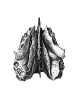 Решетчатая кость, os ethmoidale, непарная. Большая ее часть лежит в верхних отделах носовой полости, меньшая - в передних отделах основания черепа. Она имеет форму неправильного куба, состоит из воздухоносных ячеек и относится к группе пневматических костей, ossa pneumatica. В ней различают решетчатую, или горизонтальную, пластинку, перпендикулярную, или вертикальную, пластинку и расположенные по обеим сторонам от последней лабиринты. Решетчатая пластинка, lamina crihrosa, является верхней стенкой полости носа, расположена горизонтально в решетчатой вырезке лобной кости, образуя лобно-решетчатый шов, suturafrontoethmoidalis. Она продырявлена 30-40 небольшими отверстиями, через которые проходят нервы (волокна обонятельных нервов) и сосуды. Перпендикулярная пластинка, lamina perpendicularis, делится на две части, меньшую, верхнюю, лежащую над решетчатой пластинкой, и большую, нижнюю, расположенную под этой пластинкой. Верхняя часть образует петушиный гребень, crista galli. и направлена в полость черепа (к гребню прикрепляется серп большого мозга - отросток твердой мозговой оболочки). Передненижний край петушиного гребня ограничен с каждой боковой стороны непостоянным крылом петушиного гребня, а/а cristae galli. Оба этих отростка ограничивают сзади и сверху слепое отверстие. foramen cecum, лобной кости. Нижняя часть перпендикулярной пластинки, неправильно четырехугольной формы, направлена отвесно вниз, в полость носа, и образует передневерхнюю часть костной перегородки. Сверху она примыкает к носовой ости лобной кости, spina nasalis, спереди - к носовым костям, сзади - к клино